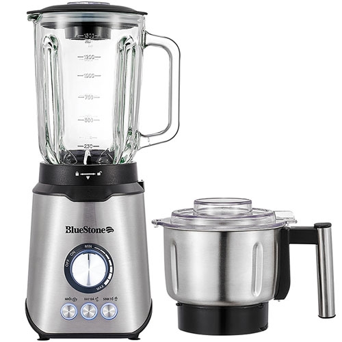 Máy xay sinh tố Bluestone BLB-5339 thương hiệu Mỹ công suất 800W xay được đá, với 2 cối 1 cối thủy tinh xay sinh tố và cối inox xay thịt và đồ khô.