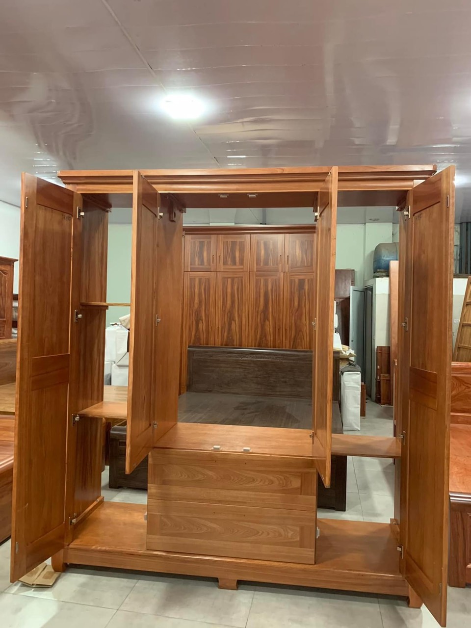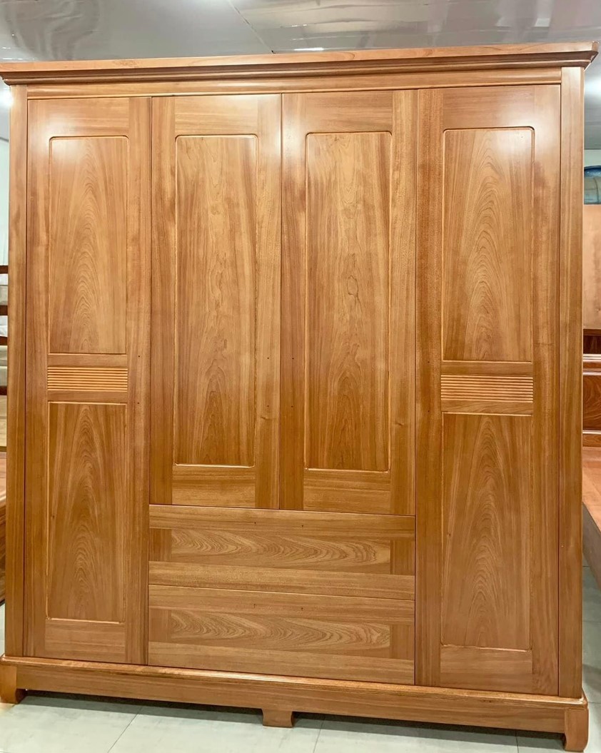 Tủ Quần Áo 4 Buồng Xoan Đào Pano Cong Lá Sách trán vòm cánh chữ C