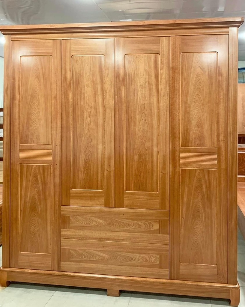 Tủ áo 4 gỗ Xoan Đào 4 cánh phẳng 2 thuận (2NKC) T4H25