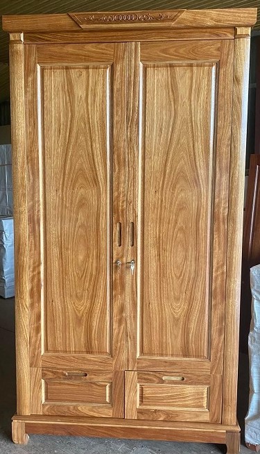 -Kích thước tủ gỗ hương xám 2 cánh mở: Tủ cao 2m1, rộng 1m15 và sâu 60cm